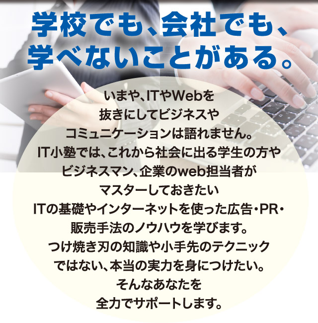 IT小塾では、これから社会に出る学生の方やビジネスマン、企業のweb担当者が